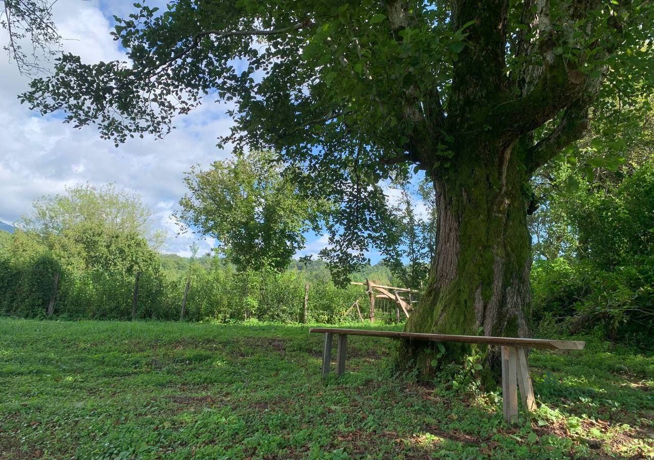 В номере 1 двуспальная кровать, раскладной диван, тумбочка, комод, обеденный стол и 3 табуретки, вешалка для одежды, зеркало, сплит система, халат. На террасе есть 4 стула и стол. Туалет, душ и стиральная машина, в 30 метрах от дома.